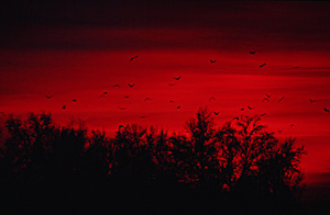 de slaapkolonies van raven en rode wouwen bezocht. Honderden
